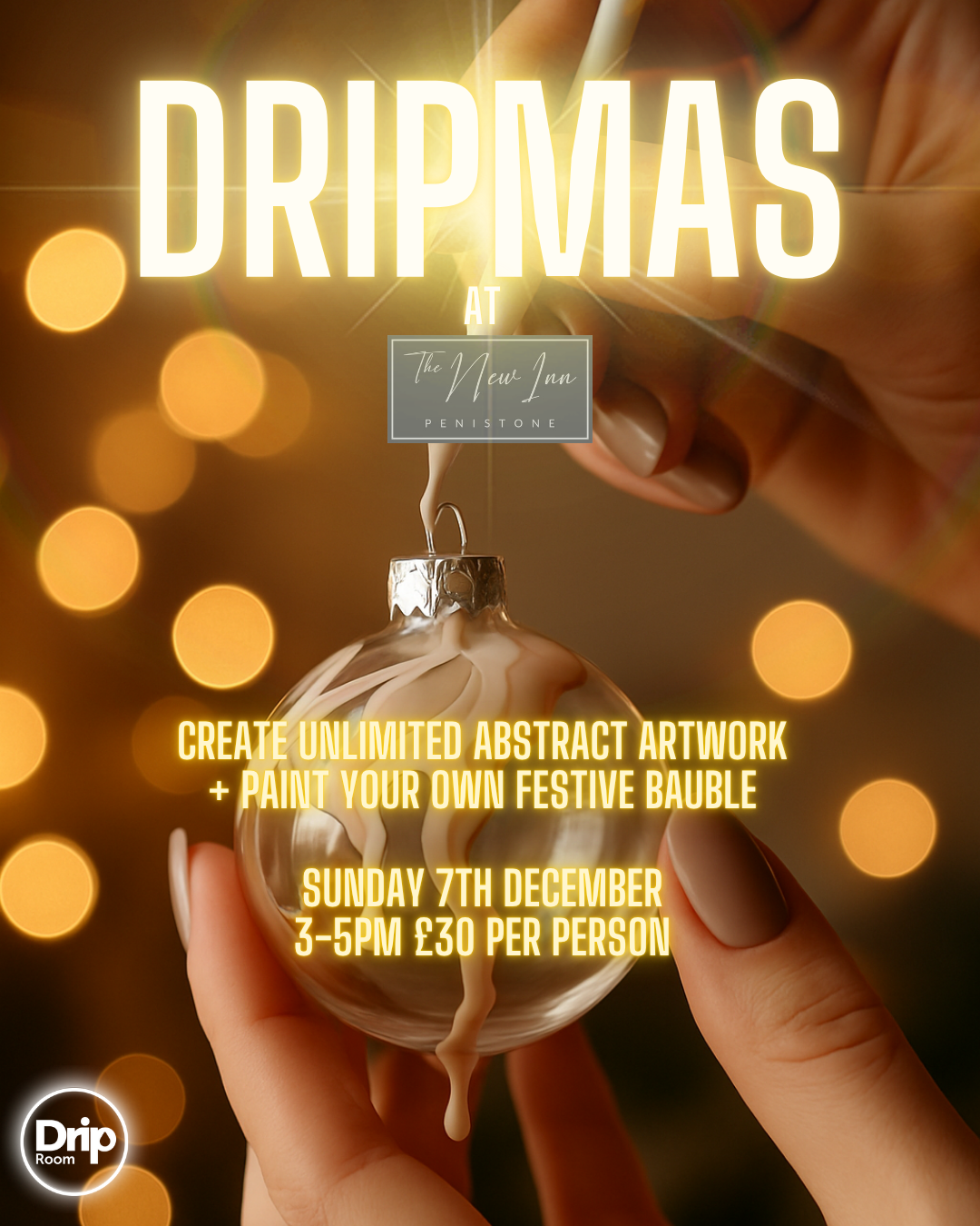 Drip Room high vibe art sessions are coming to THE NEW INN!! We’re talking: ✨ Magical private tipi’s decked out in fairy lights ✨ Your own private bar ✨ Abstract art session in Drip Room style ✨ Exclusive option to hand-paint your own bauble ✨ Festive beats, cozy luxe vibes, all the feels Sunday 7th…